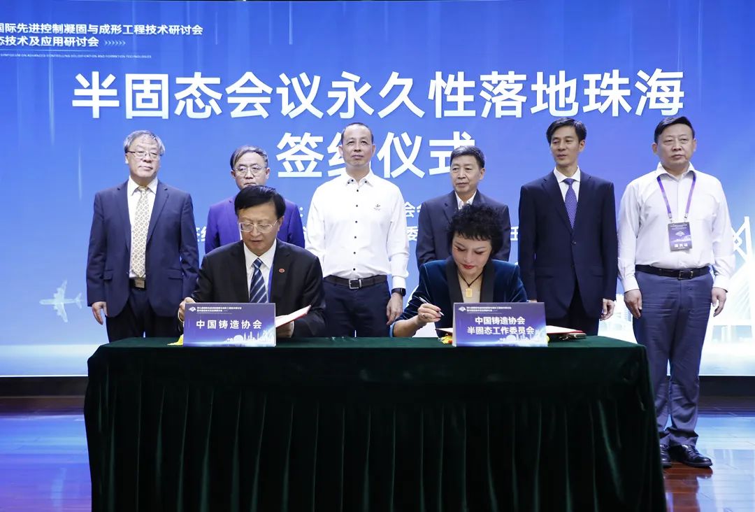 领导致辞毕,中国铸造协会与中国铸造协会半固态委员会举行了“半固态会议永久性落地珠海”签约仪式。根据协议,本届会议既是第三阶段的结尾(在福建将乐举办了第八届会议),也是第四阶段的开端。第四阶段会议将在珠海连续举办三届(第九届、第十届、第十一届)。与此同时,借助此阶段专业会议的“东风”,争取第十六届国际合金与复合材料半固态技术大会(2025年)在珠海举办,利用珠海作为国际会展中心城市的优势,扩大会议的国际影响力、促进产品的国际化应用。