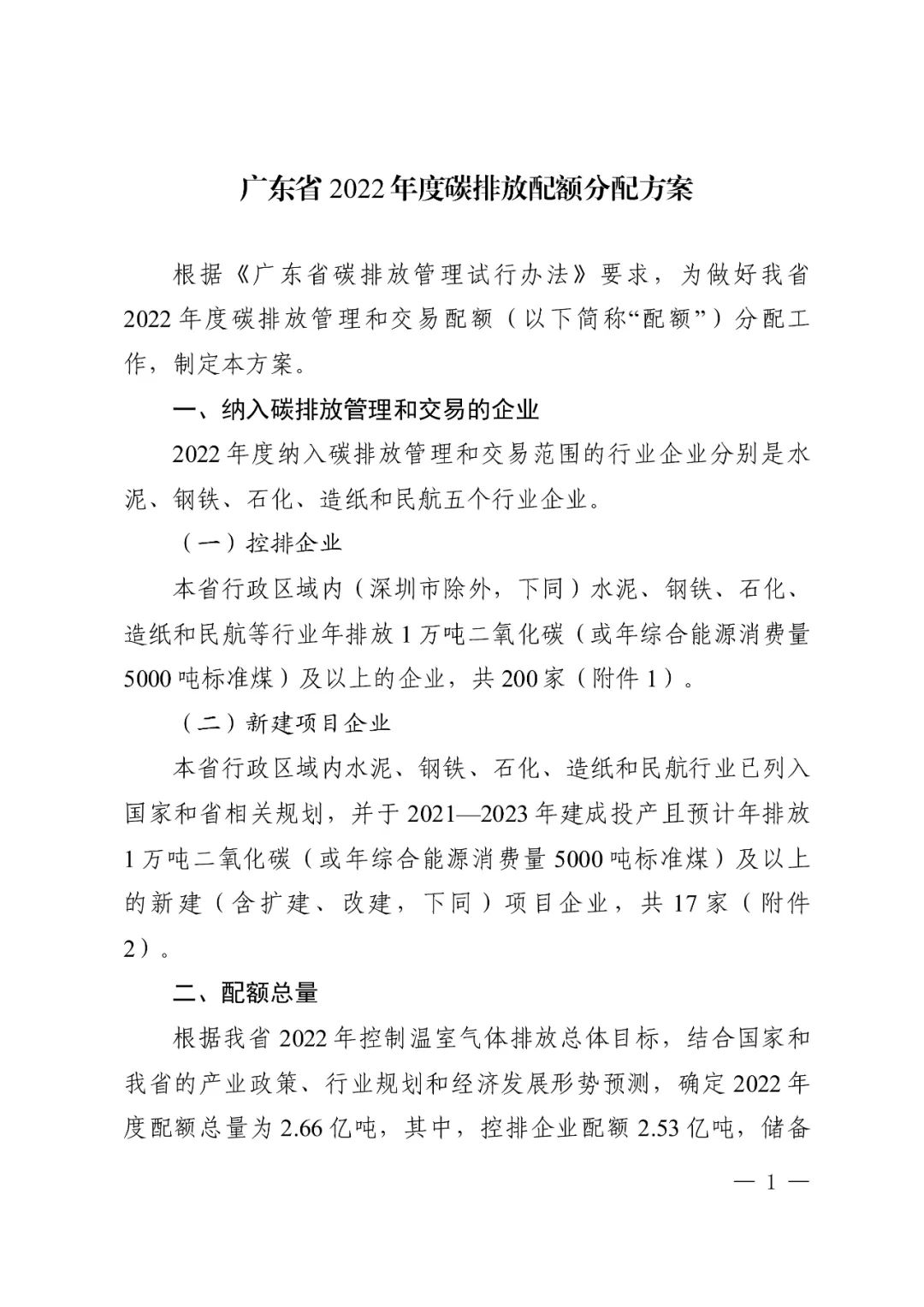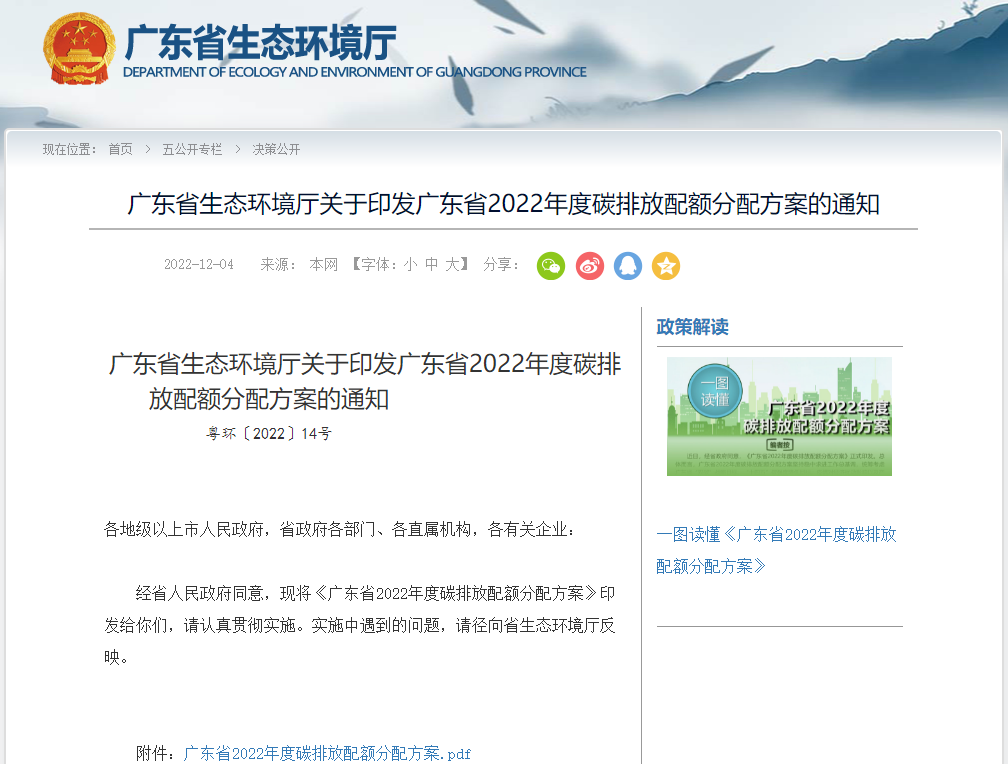 广东省生态环境厅印发《广东省2022年度碳排放配额分配方案》
