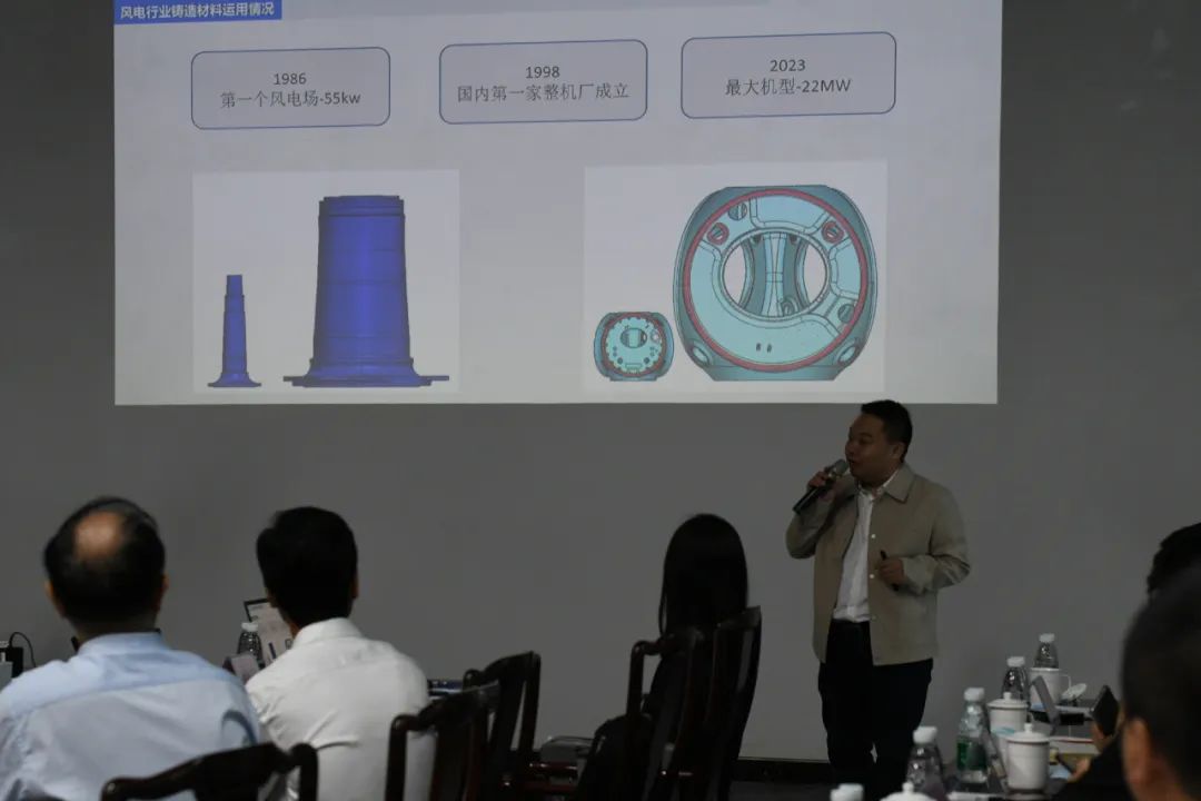 明阳智慧能源集团股份公司机械系统室副主任段宇进行风电行业铸件技术及工艺介绍、研讨