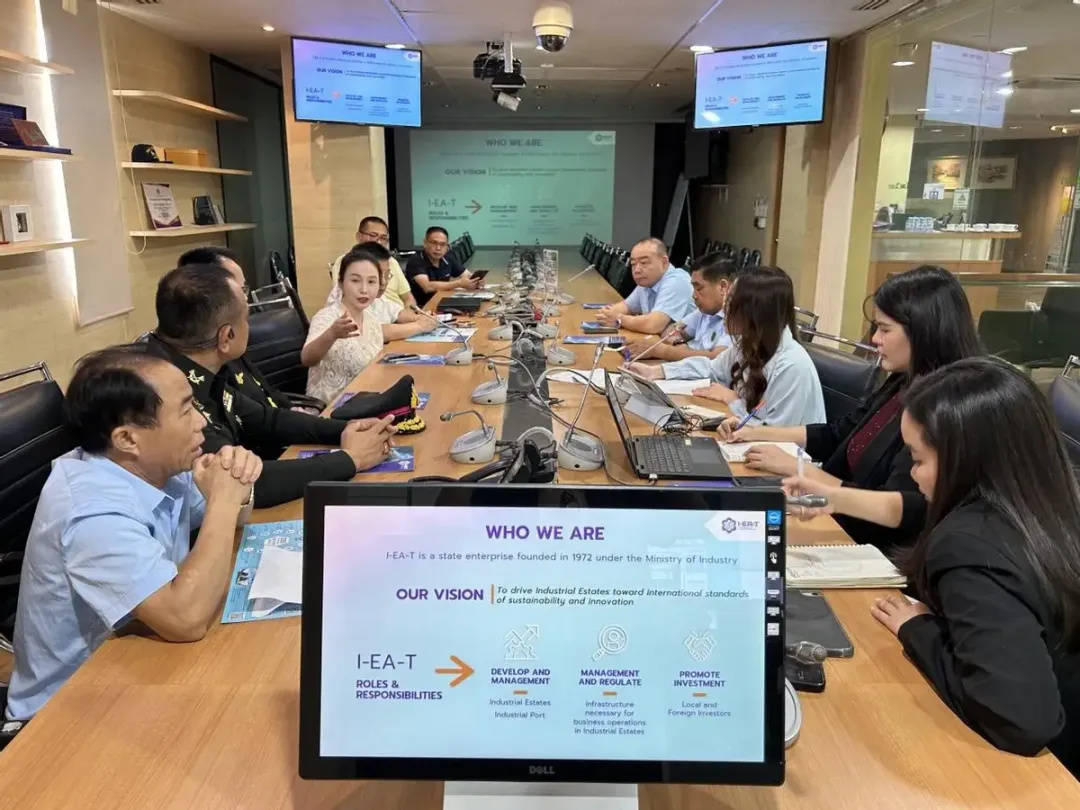 此次双方齐聚一堂,主题为深会议期间,双方深入探讨泰国生态工业园的合作建设与规划事宜,包括推动工业化与环境保护的和谐共存,确保工业园区的绿色发展;建设高效能的工业港口,提升物流效率,降低运营成本;发展工业区所需的基础设施,如能源供应、交通网络、信息通讯等;制定优惠政策,吸引国内外投资者参与工业园区的建设和运营;促进技术创新,鼓励企业采用先进的生产技术和管理方法等。