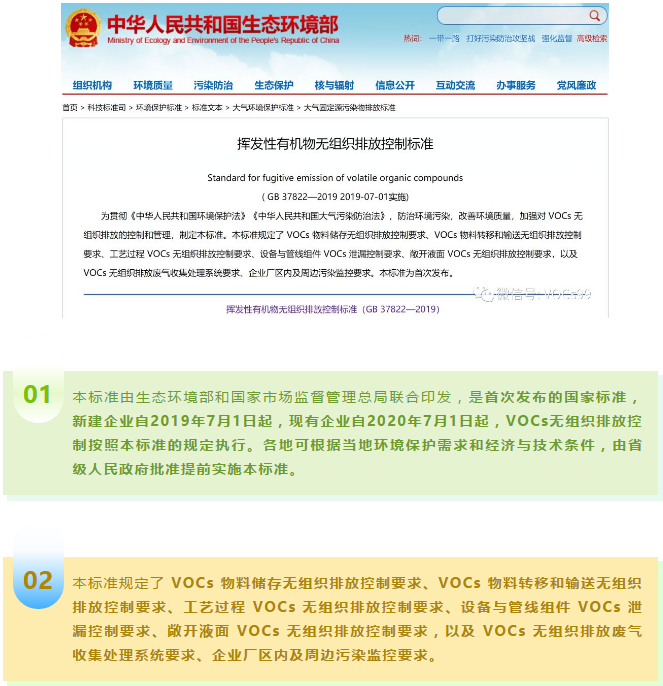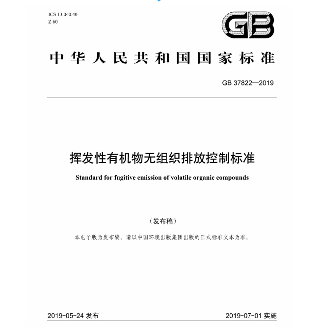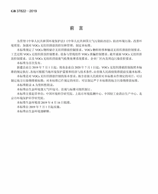 日前,生态环境部和国家市场监督管理总局联合印发《挥发性有机物无组织排放控制标准》( GB 37822—2019),本标准为首次发布,将于2019年7月01日实施。