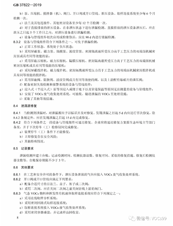 全文 | 挥发性有机物无组织排放控制标准( GB 37822—2019)