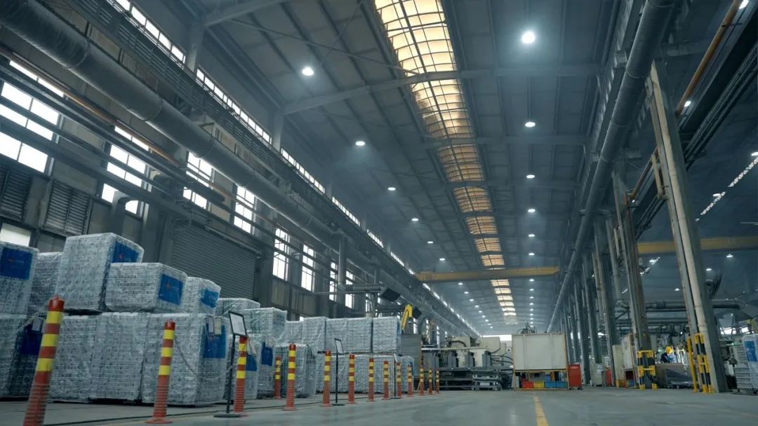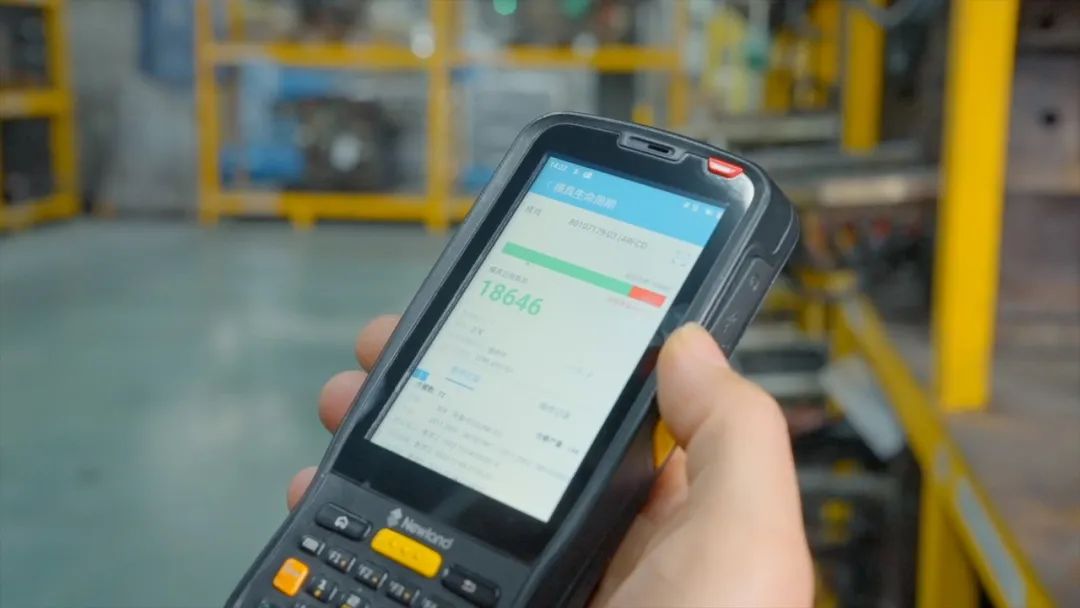 原材料区、熔炼区、压铸车间、机加工车间、测量室等不同区域都有对应的数据大屏实时跳动着,出入库信息、设备开机率、异常响应情况等数据一目了然。