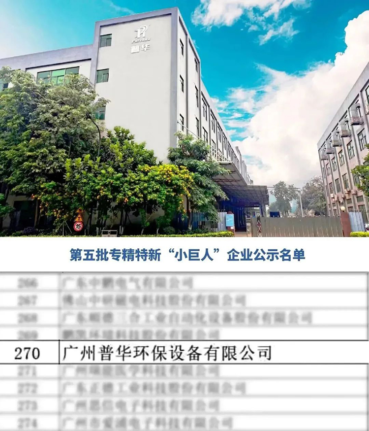 2023年7月14日,广东省工业和信息化厅发布了第五批专精特新“小巨人”企业名单的公示。普华环保成功入选,荣膺国家级专精特新“小巨人”企业称号。