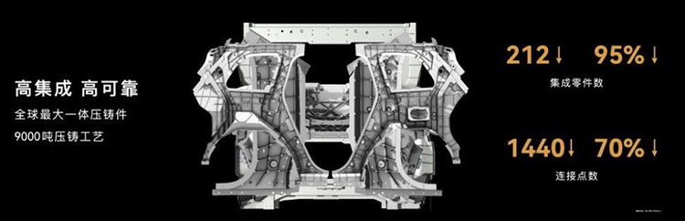 据悉,该铸件被应用于大型SUV产品AITO问界M9,其由全新D级豪华SUV平台打造,采用全铝合金底盘。该车型最大亮点之一即为搭载大型一体压铸后车体等压铸件,该车型将其中的222个零部件,集成为10个一体化压铸零部件,零部件数量下降95%;连接点数量减少1440个,下降70%,带来更高的集成度,更高的可靠(刚度)性,更加的轻量化。本铸件从零件设计、模具开发、材料验证均由国内压铸一体化领域专业团队合力研发,该铸件的获奖也再次体现了我国的免热处理铝合金材料和铝合金一体化大型压铸行业已呈现出高质量快速发展态势,在一体化大型压铸铝合金材料技术上已处于世界先进水平。