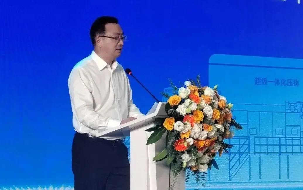 随后,中国铸造协会会长张立波代表行业协会对文灿集团、赛力斯汽车、力劲集团和上海发那科表示祝贺。并指出,在“双碳”目标引领和新能源汽车产业大变革的推动下,一体化压铸技术正在逐渐改变汽车制造行业的传统生产模式,成为未来汽车制造的重要发展方向,四家领先企业在充满未知的全新技术领域,挑战了压铸行业的又一个不可能,为中国新能源汽车的创新发展做出了突出的贡献。