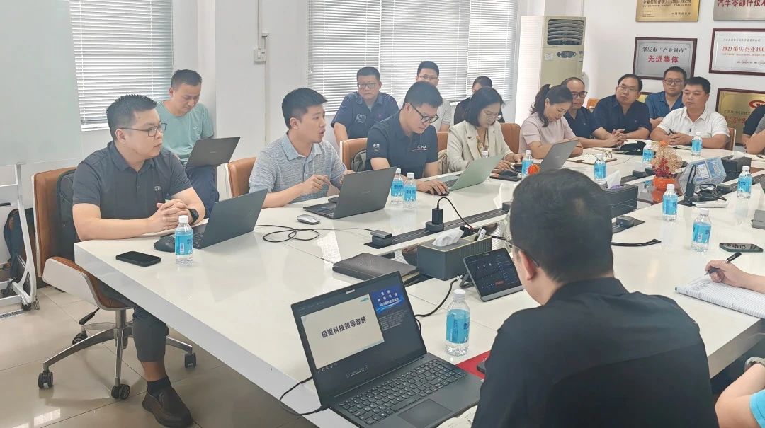 鸿特科技总裁卢宇轩、常务副总裁黄平、IT部长王宗顺及各基地、部门负责人,与极望科技东莞分公司总经理向梅荣、交付总监许桂渝及项目团队核心成员共同出席了本次重要会议。本次大会旨在明确项目目标与路径,统一团队协作机制,凝聚共识,确保MES系统在鸿特科技肇庆与台山基地高效、成功落地。