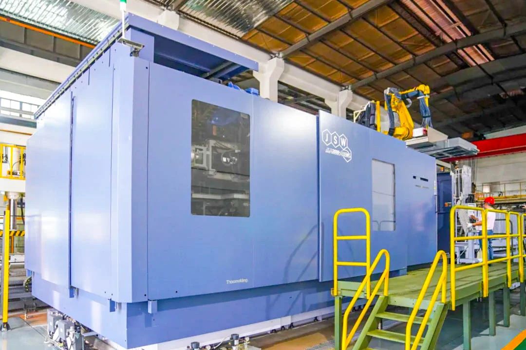该成型机来自日本日钢JSW,是目前业界最大的镁合金注射成型机之一。主要用来生产汽车双联屏显示器支架及壳体(CID)或三联屏CID,并在汽车前横梁支架(CCB)的成型方面展现出显著优势。此外,该成型机不使用熔化炉及SF6保护气体,实现了效率的提升和节能环保的目标,践行了宜安科技‘绿色制造’的理念。