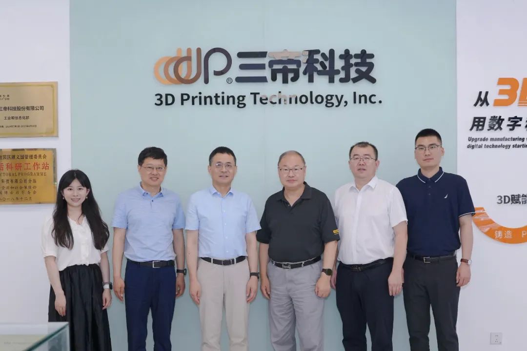 作为国家专精特新“小巨人”企业,三帝科技是国内唯一同时掌握选择性激光烧结(SLS)、选择性激光熔化(SLM)、3D砂型打印(3DP)和粘结剂喷射(BJ)四项核心技术的增材制造服务商,以“从3D打印出发,用数字科技升级制造”为愿景,持续推动技术突破与产业应用。赵建国一行参观了三帝科技北京研发总部,实地考察3D打印设备生产线,深入了解技术研发、市场应用及业务协同需求。